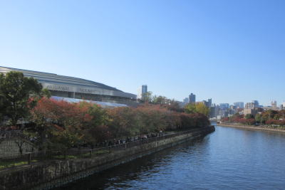 ![]() 大阪城ホールです。この川は旧淀川今は大川となり、 我が家の前の川となって大阪湾にそそいでいます。 |
